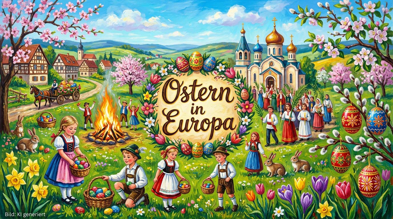 Ostern gilt als das wichtigste Fest der Christen – und doch wird es in Europa erstaunlich unterschiedlich begangen und gefeiert. Während in manchen Regionen riesige Feuer in den Abendhimmel lodern, ziehen anderswo feierliche Prozessionen durch enge Gassen, Kinder verkleiden sich als „Osterhexen“ oder kunstvoll verzierte Eier werden den Hang hinuntergerollt.
