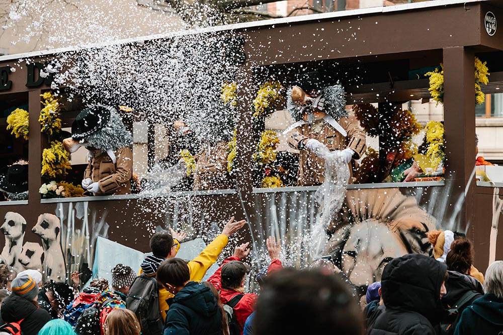 - In Bern werden 2026 vom 19. bis 21. Februar Bären geweckt, Altstadtgassen geflutet und nächtelang Guggenauftritte gefeiert.